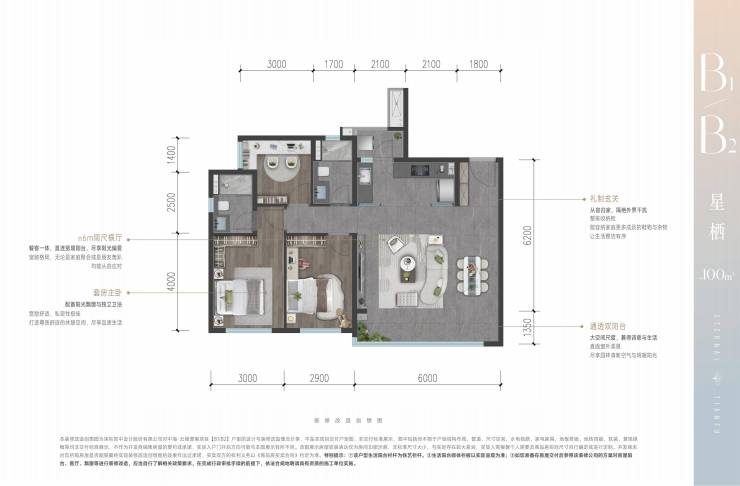 100㎡三房两卫(2梯4户/15-17F)总价220-230万