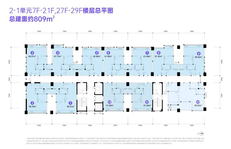 建筑高度:29层(2-1单元)/30层(2-2单元)