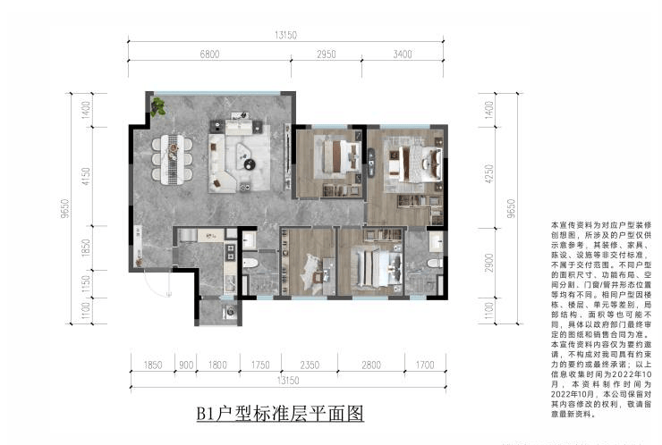 建面约126㎡四室两厅两卫(北地块15-18F小高层,2T4)