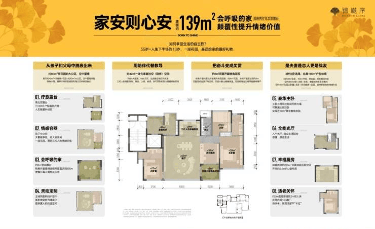 招商锦樾序主打 112 - 175㎡的户型产品,全为四房设计,首开户型为 112 - 139㎡。