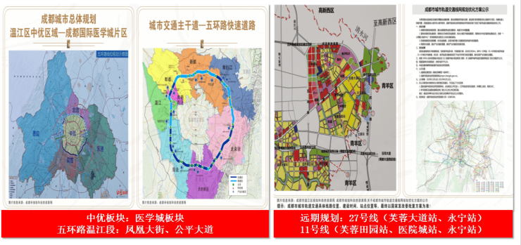 •紧随城市发展,抢占官方规划的“一心两核、三轴四区”,以“三医+AI”产业为核心功能和发展动力的成都清水河高新技术产业走廊,按照“十四五”规划,到2035年,地区生产总值将达12000亿元左右,坐享产业技术高地带来的城市资源先发优势。