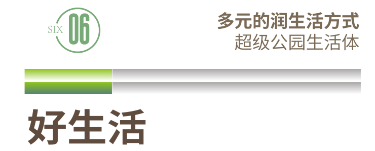 以自然科普(溪谷十二景)、体适体能(青少年体适能训练所)、趣味运动(儿童足球/羽毛球+乒乓球/滑板运动场)、宠物友好、邻里关系(社区礼堂——恒温泳池/健身房/书吧/咖啡吧),构成人文生活的主题场景。