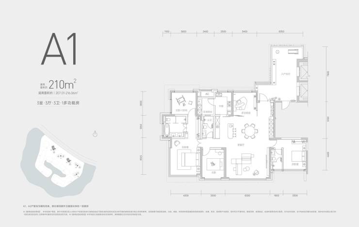 326㎡,总价1100-1200左右/(少一个阳台307㎡总价减100万)