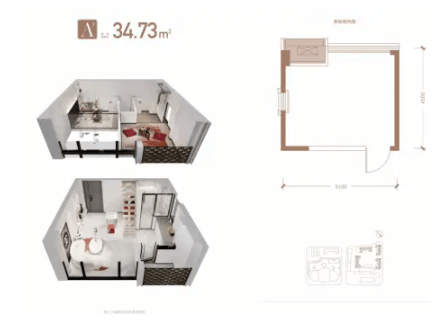 建面约24-34㎡的4.2米层高LOFT/平层