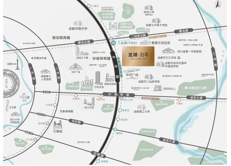 - **教育资源丰富**:区域内有12大学校,涵盖从幼儿园到中学以及高校的全龄段教育资源,像嘉祥外国语学校、成都七中英才、成都英华、二仙桥学校、万汇学校、理工大学、理工大附属中学、华西中学、四十九中、十二幼儿园、十三幼儿园、双林小学等。