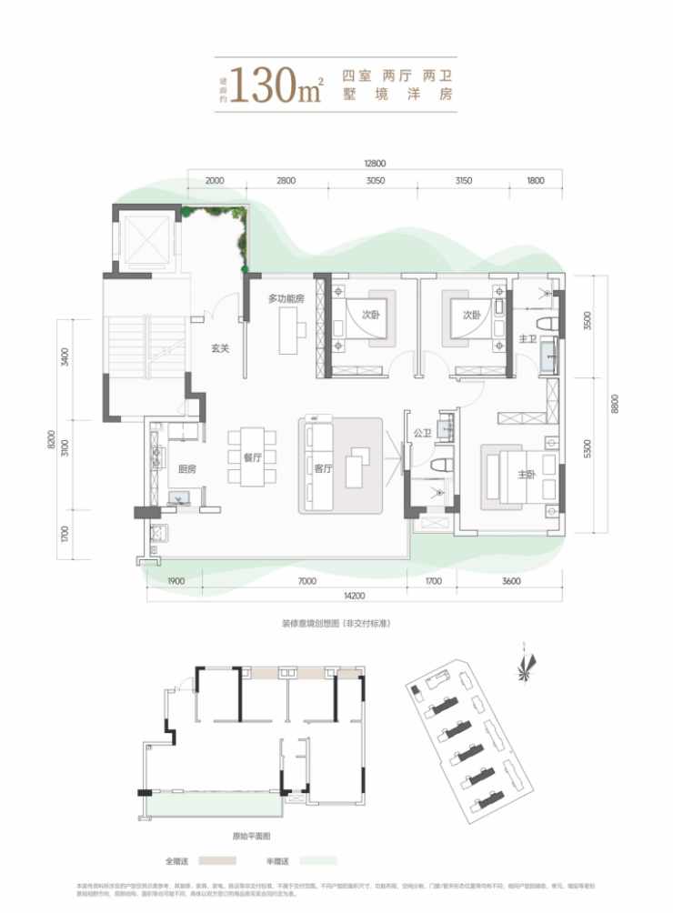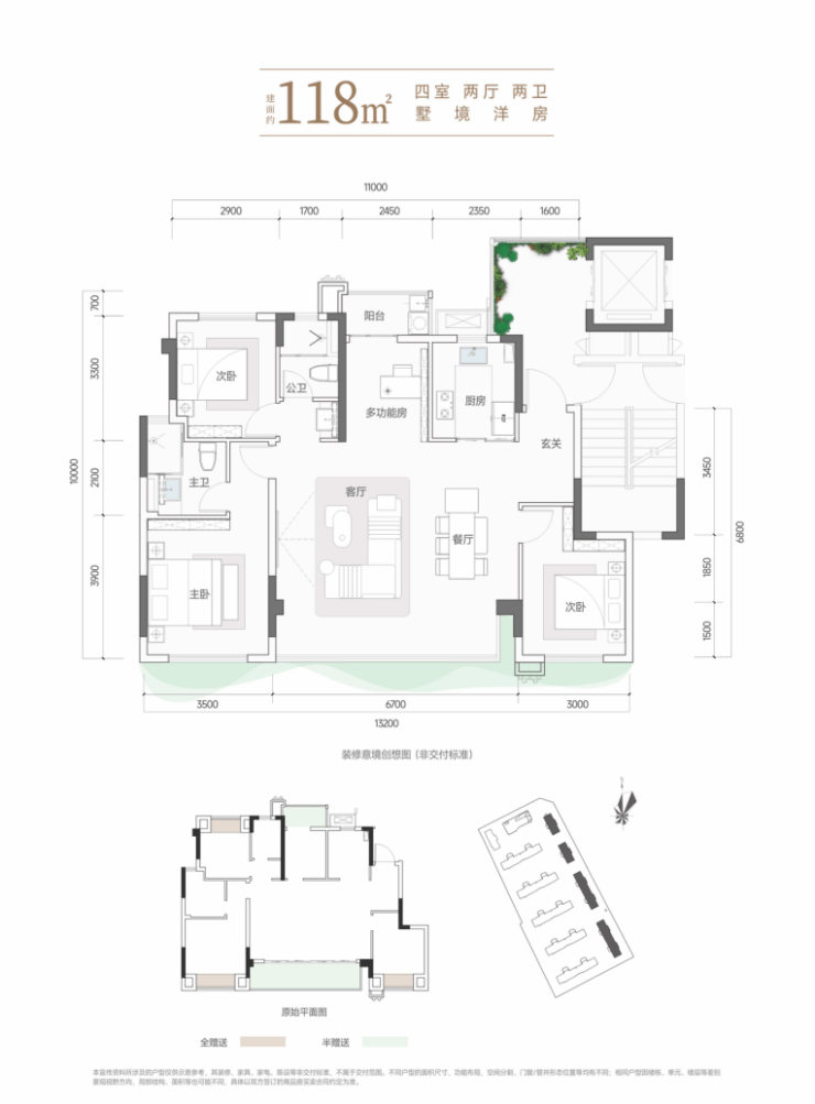 【户型配置】118㎡(1/2号楼)、130-143㎡(9/10号楼)四居室