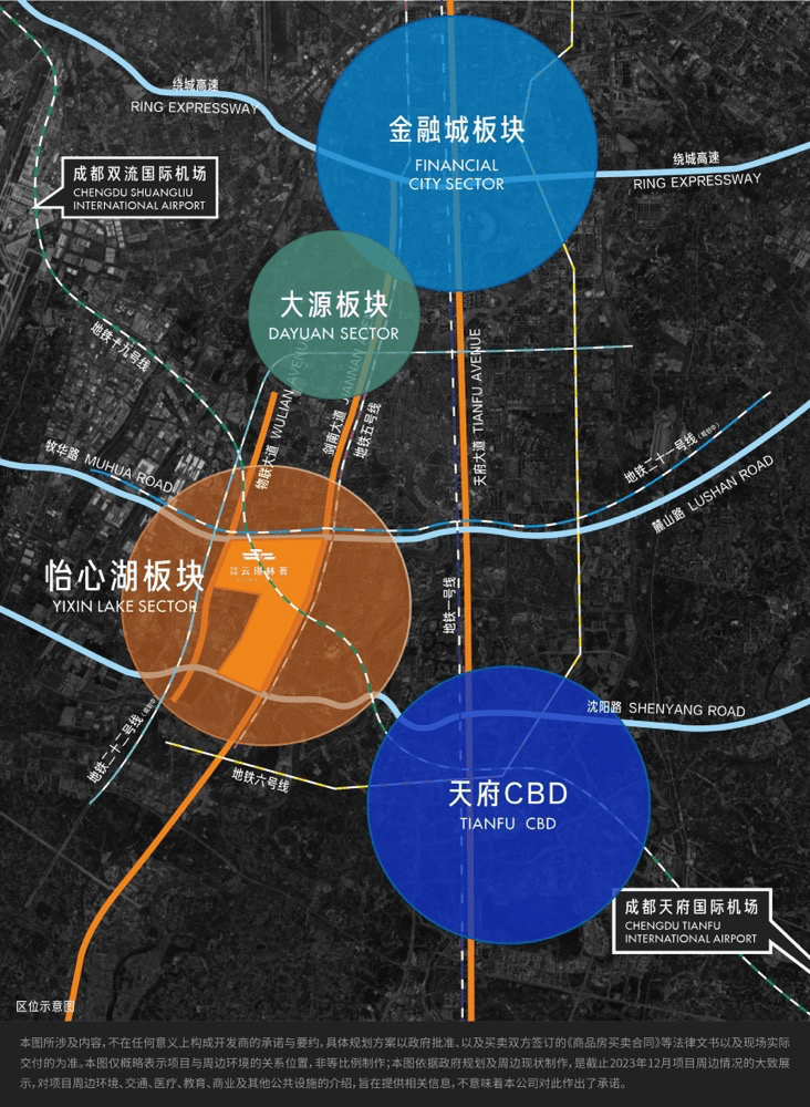 项目雄踞天府大道与剑南大道双轴芯,坐享"金融城-怡心湖-天府CBD"黄金三角区位。作为成都南拓战略核心区,8.4平方公里的怡心湖新城由国际顶尖机构阿特金斯操刀规划,参照新加坡滨海湾设计理念,将打造产城融合的现代化新城。项目所在的A区定位为高端低密住区,未来价值可期。