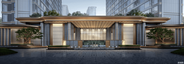 项目在规划上极具巧思,创新性地融合了阵列式与围合式布局的优点,既保证了全南北朝向和最宽约66米的奢阔楼间距,又通过大面积的中央庭院水景,形成了层次丰富的核心景观互动空间。