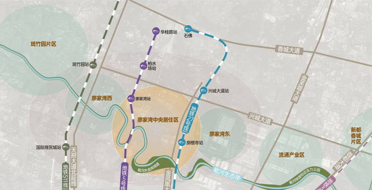 项目毗邻廖家湾TOD(在建)和幸福桥TOD,形成"站城一体"的现代化城市空间。其中廖家湾TOD规划商业体量约1.4万㎡,将引入高端零售、国际影城等业态。