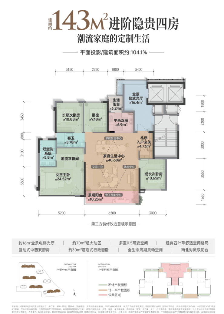 此户型定位为社区的旗舰产品,旨在提供更具仪式感与社交属性的家庭生活空间。除了具备143㎡户型的全部优点外,其核心优势在于