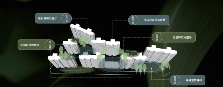 由贝尔高林国际团队打造,构建3大主题中庭+2个休闲剧场,营造五感沉浸式森居体验