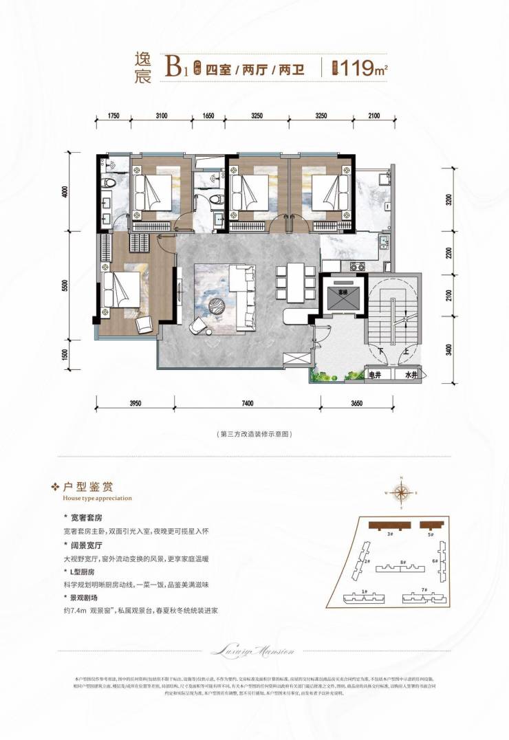 在售面积:建面约109m²-119m²-139m² ,实得约136-174㎡