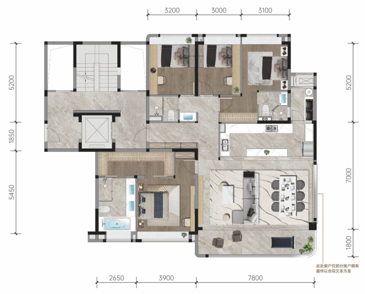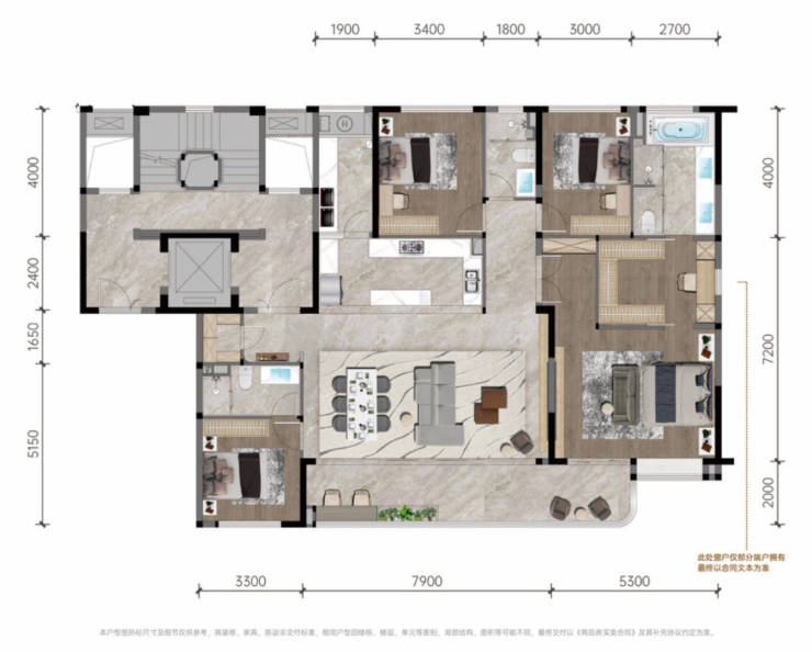 199㎡:60㎡行政主卧套间,10米观景阳台