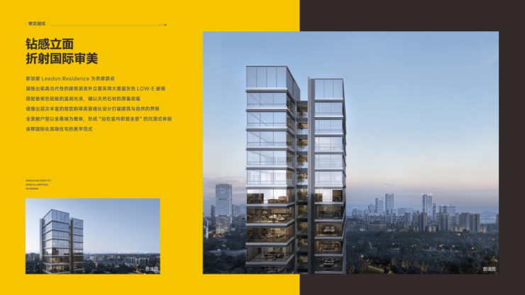 新加坡钻感立面:深大面蓝灰色LOW- E玻璃,搭配香槟色铝板的温润光泽,碰撞出层次丰富的视觉韵律。