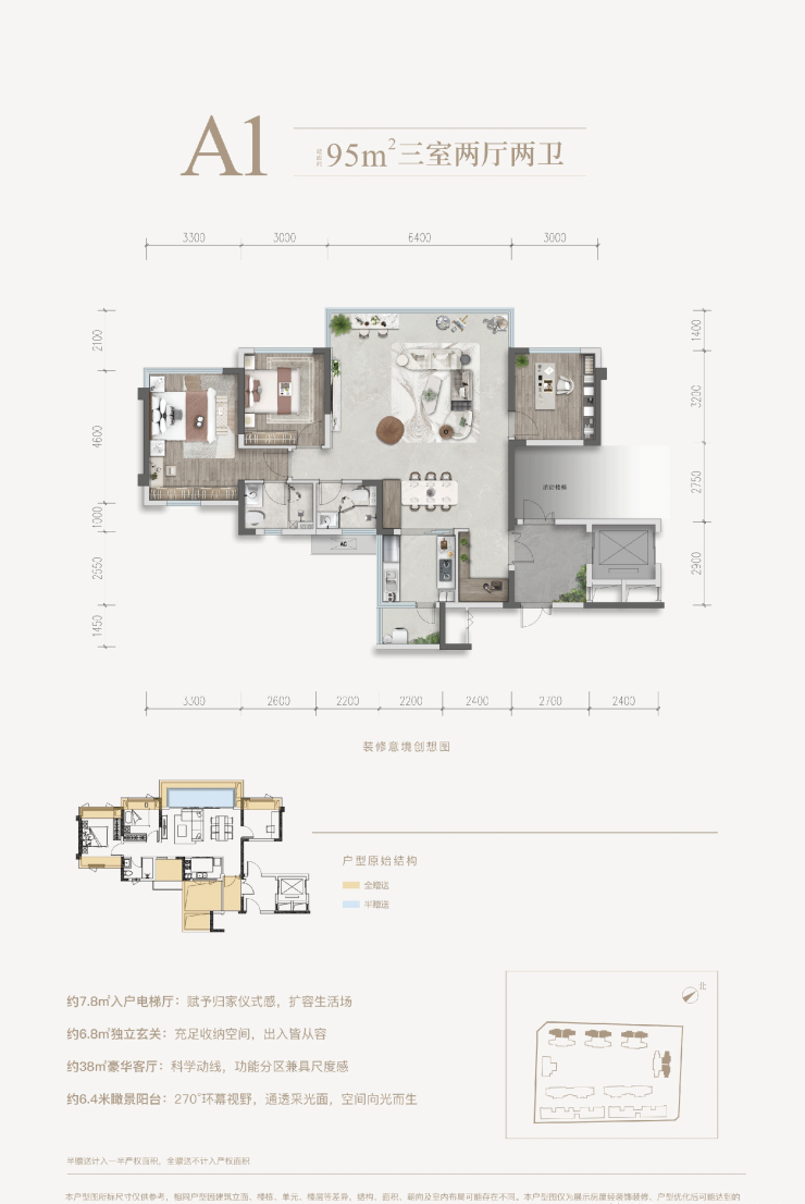 空间格局:95-136㎡三至四房臻品户型