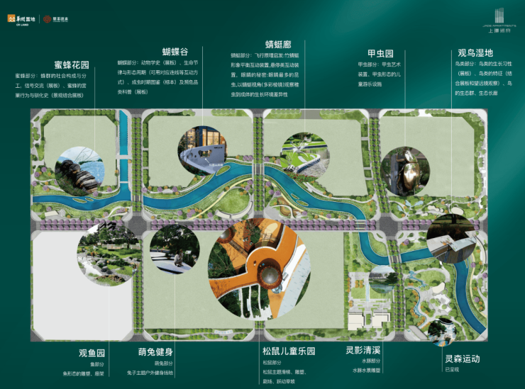 约160亩上璟公园,定位“城东首个儿童成长主题公园”,以1条约1.5km溪谷河道+1条约1km蓝花楹大道+3大归家公园绿道+6大公园直连社区,构成大盘生活的物理场域。
