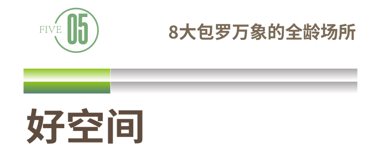 以自然科普(溪谷十二景)、体适体能(青少年体适能训练所)、趣味运动(儿童足球/羽毛球+乒乓球/滑板运动场)、宠物友好、邻里关系(社区礼堂——恒温泳池/健身房/书吧/咖啡吧),构成人文生活的主题场景。