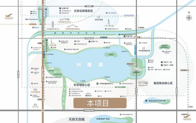 项目位于兴隆湖南岸,距离兴隆湖湖区600米,由成都天投开发,打造一线兴隆湖70万方湖岸大城
