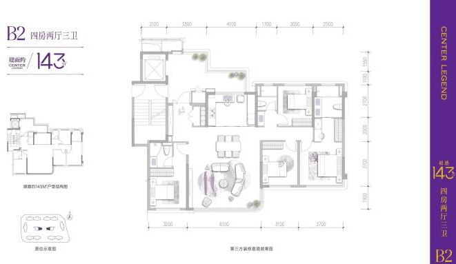 光厅双厅三卫配置,功能分区清晰,满足高端改善与三代同堂需求,总价最高 510 万;