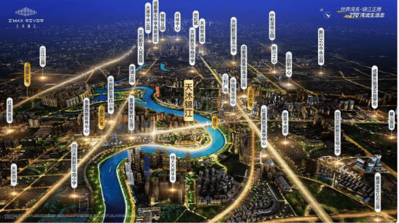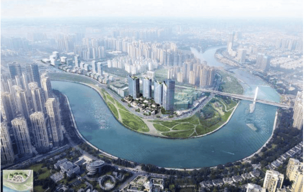 四栋江景高层与滨水商业街区