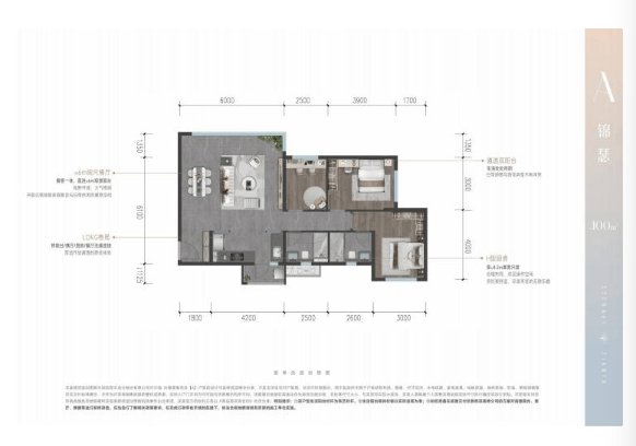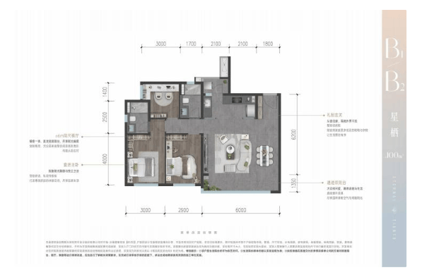 同为约100㎡面积段,此户型可能在不同楼栋或位置上有所差异,但均保证了三房两卫的完整功能。动静分离的设计,为主人提供了私密与宁静的居家环境。