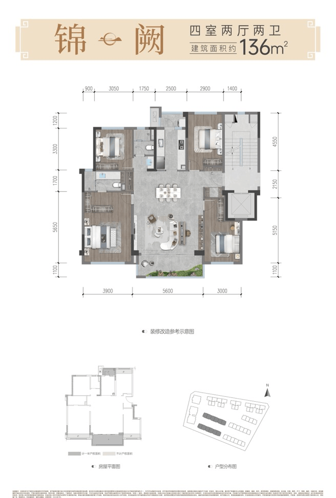 锦阙丨建面约136㎡阔境奢宅丨四室两厅两卫