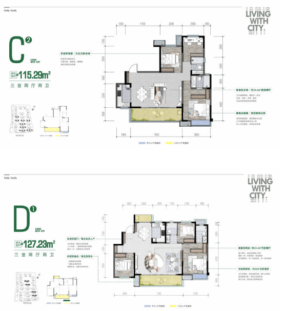 此系列户型将主要面向对居住空间有更高要求的改善型家庭。房间数量增加至三房或四房,各个功能空间的尺度更为宽松,客厅开间更大。主卧有望设计为套房形式,提升私密性与舒适度。部分边厅或端户户型可能拥有更优的采光与观景面,满足多代同堂或二孩家庭的居住需求。