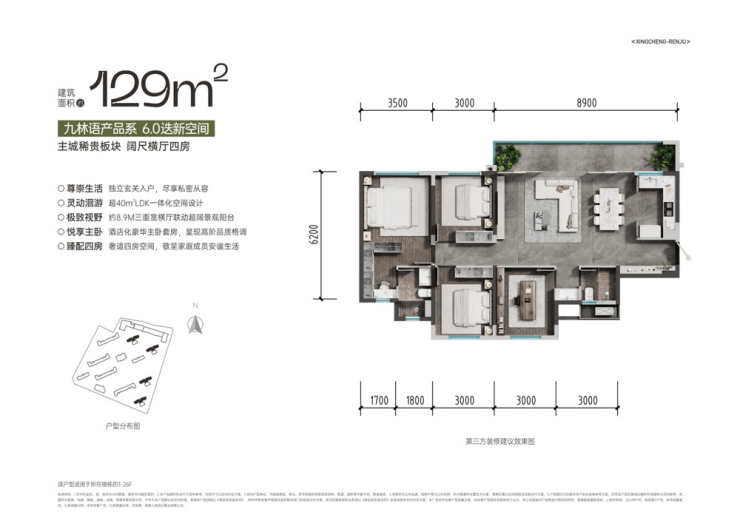 约8.9M超阔景观阳台;超40m²LDKB一体化空间;全采光奢适四房