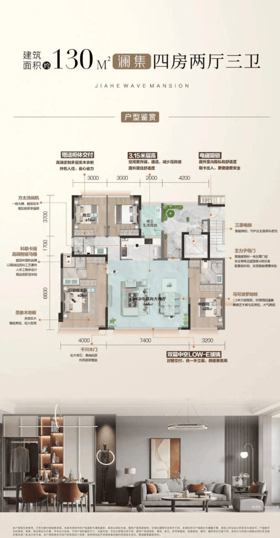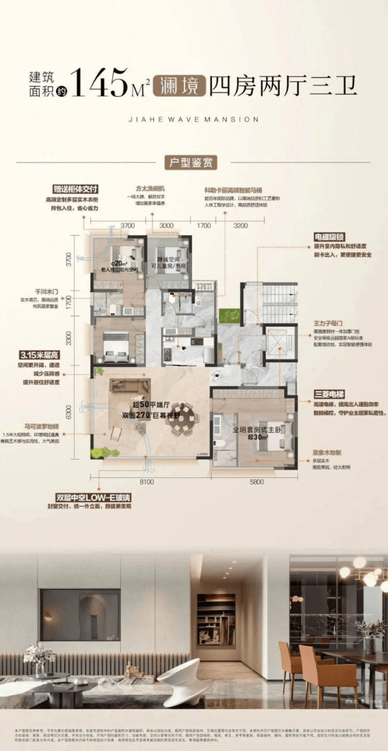 设计,连接超大景观阳台,公共区域极为开阔。主卧升级为