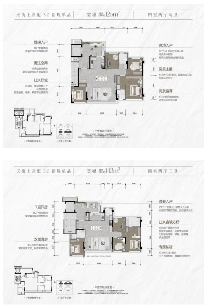 建面约126㎡/143㎡ 四居室