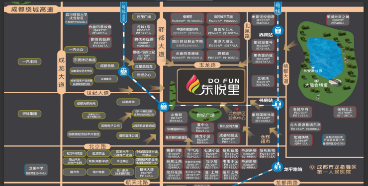 项目不仅紧邻政务中心,还享有三地铁线环绕的便捷交通——已开通的地铁2号线、在建的13号线以及规划中的11号线,使得从东悦里出发到达成都各个城区变得分外便捷。