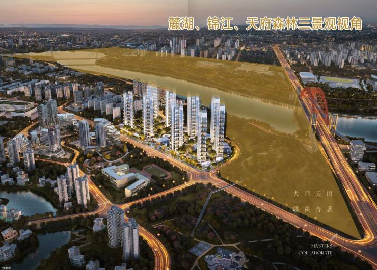 对外,项目西邻锦江源湾,北靠天府森林公园,东望麓湖水域,形成“一江一湖一森林”的景观矩阵。