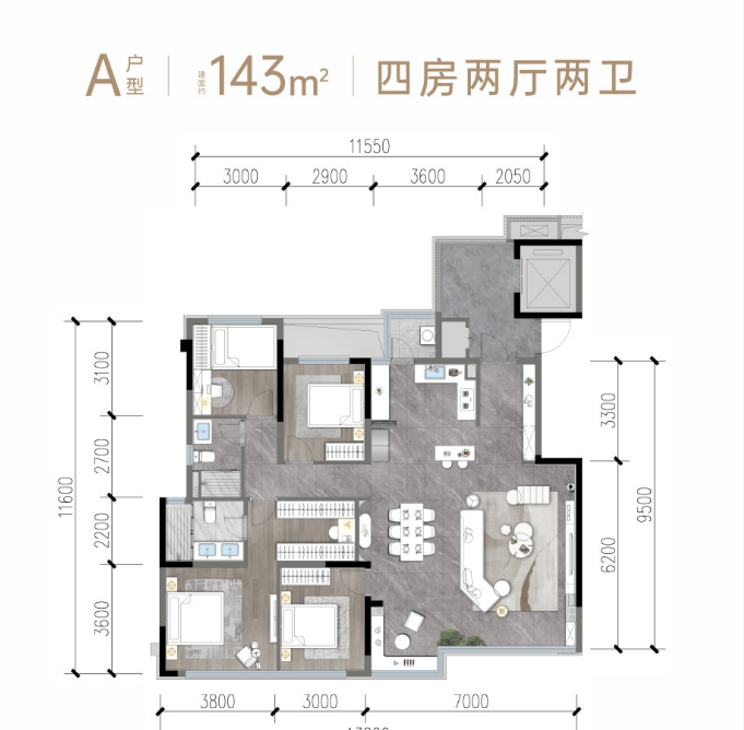 B2户型 143㎡(四房两厅两卫)