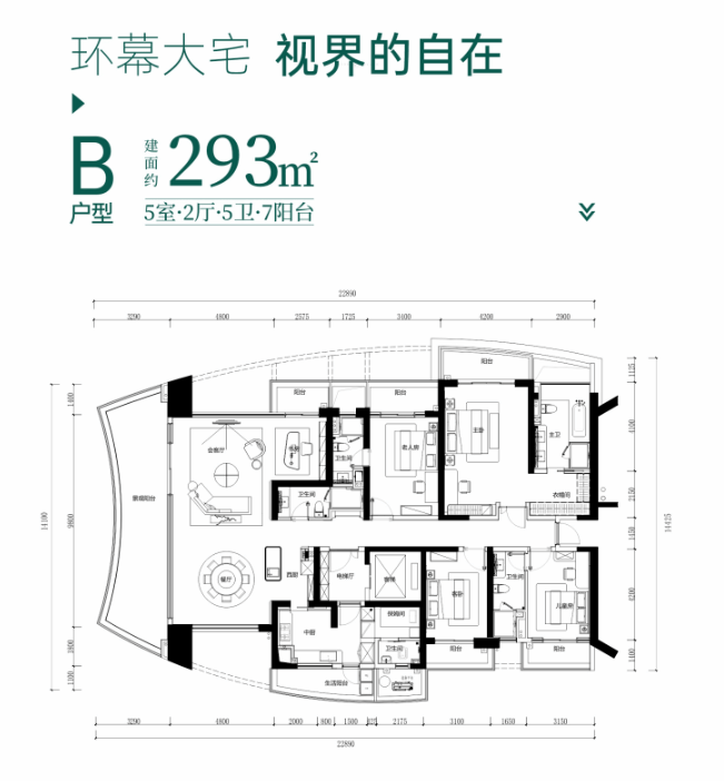 建面约274-293㎡ 奢阔五居室