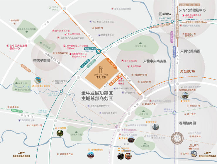 火车北站每年带来3000万人流量,超百万高端商旅客群、医疗人群以及商务会展人群,能快速到达成都知名景点,宽窄巷子,武侯祠,文殊坊;知名医院华西医院、中医药大学附属医院。