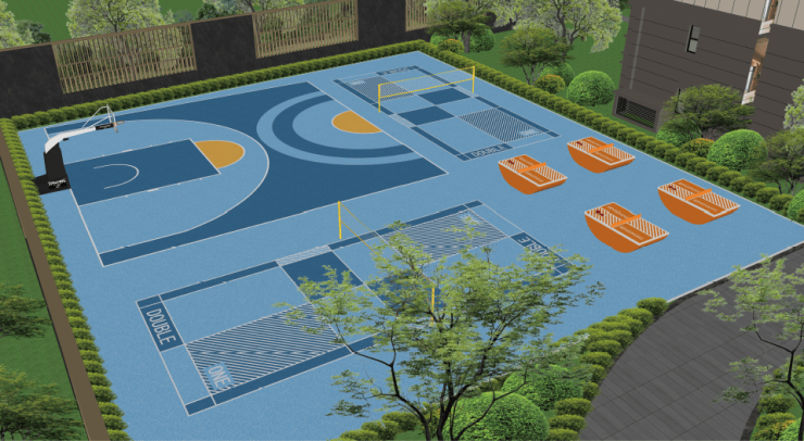 双球场配置+模块化服务空间,让运动成为日常的优雅仪式