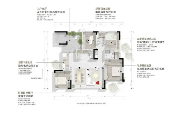 核心特色:所有户型均强调LDKB一体化、大开间与全明设计,通过结构创新实现高得房率与空间灵活性。