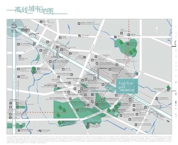 万科高线公园雄踞行政学院TOD南区核心,北接TOD北区商业综合体与生态公园,南连三圣乡成熟住区,东临万科经典项目"金色城市",西靠成都市委党校。