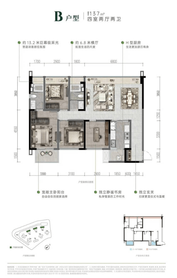 项目主力户型面积段从108㎡覆盖至218㎡,产品线丰富,精准匹配从品质刚改、三代同堂到终极改善等不同家庭结构的需求。