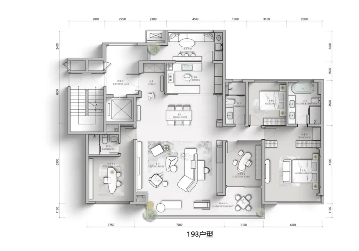 私密配置:143-198㎡采用2梯2户,248㎡实现整层专属的一梯一户格局