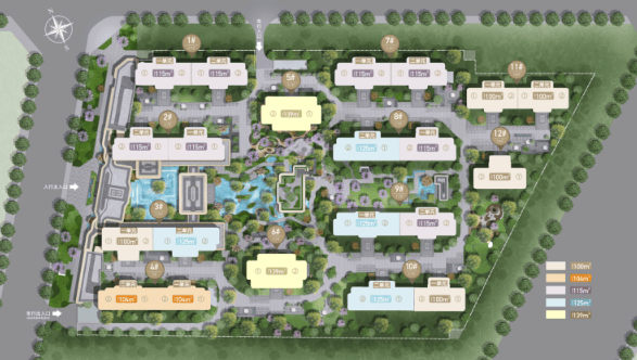项目通过创新的阵列式与围合式双布局,打造纯南北朝向、楼间距最宽约66米的低密社区,并规划约2.7万方酒店式度假园林,为城北追求生态、品质与醇熟生活的家庭,敬献一处自然、人文与城市资源完美交融的理想家园。