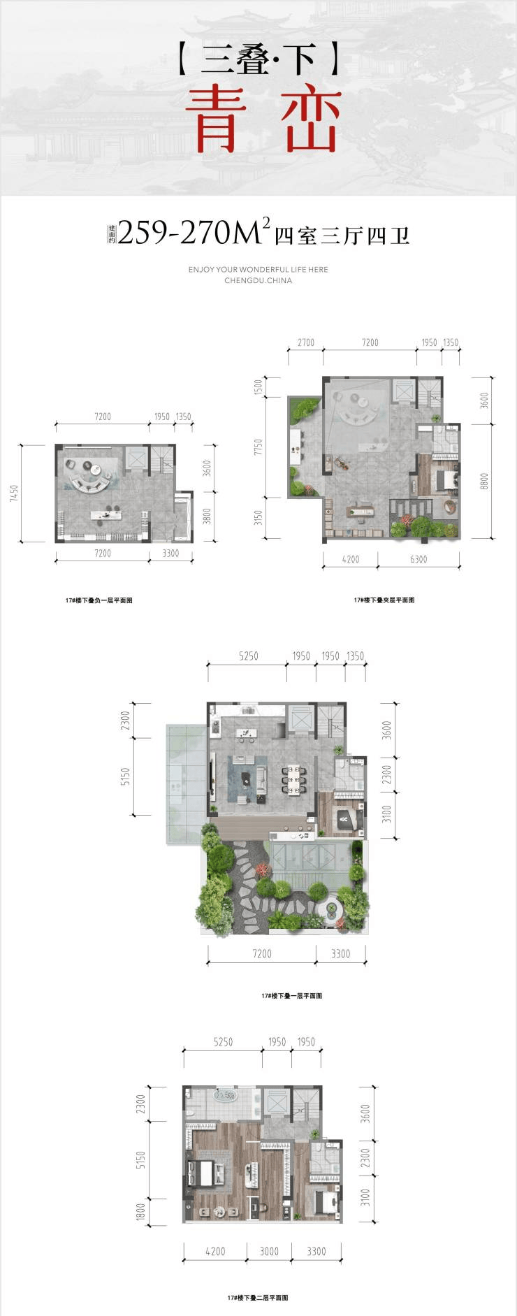 【三叠】下叠 四室三厅四卫 | 约259-270㎡