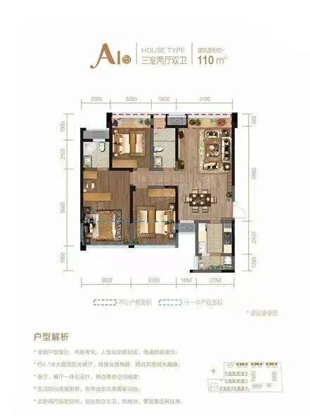 100-110㎡三室两厅双卫:经典通透户型,餐客分而不离,全景露台 + 通风式厨房,适配刚需改善;
