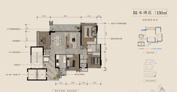 128-192㎡全系四居户型,采用创新空间布局,兼顾功能性与舒适度:• 双厅一体化设计延伸视觉尺度• 全明卫浴系统保障健康生活• 270°观景阳台衔接室内外空间