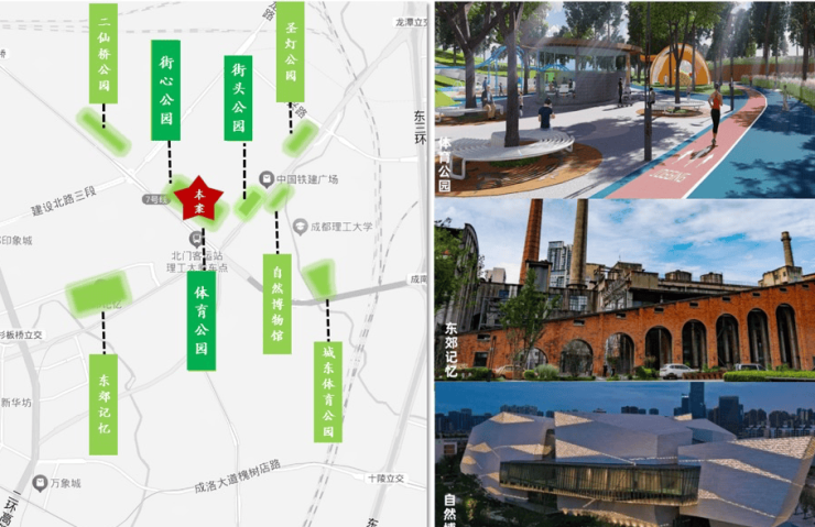 下楼即享一河三公园,左拥街心公园,右揽体育公园,街头公园,家门口畅享沉浸式鲜氧生活;3KM范围内更有圣灯公园、二仙桥公园、东郊记忆、自然博物馆、体育公园等,实现人与自然“零距离”