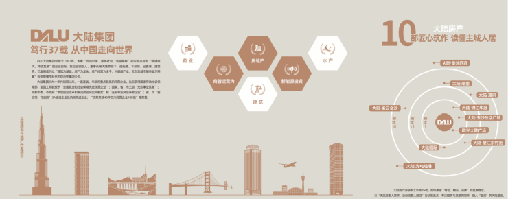 大陆集团创立37载,以“建筑为基础,房地产为龙头,药业、投资、水产为辅”的综合集团,荣获改革开放40年四川民营企业100强等荣誉