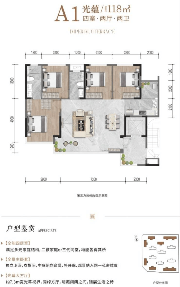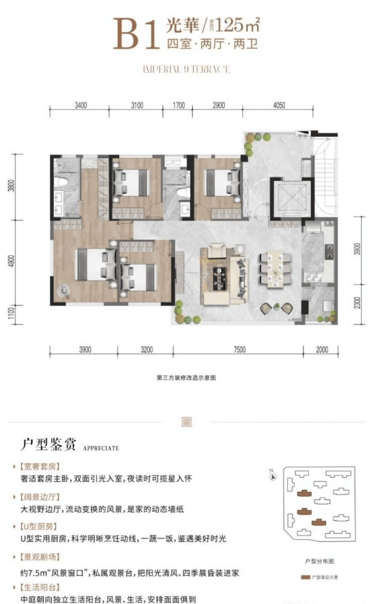 户型有118,125,139的平层,有141,150,176的跃层;还有二楼带平台花园的。
