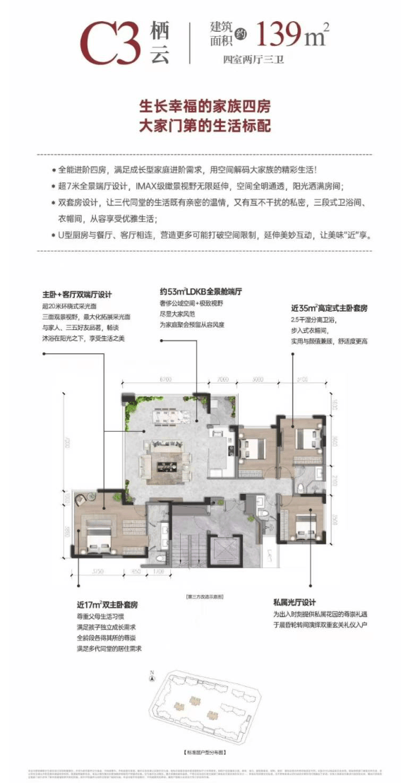 项目提供从舒适三房到阔绰四房的完整产品线,均以高实用性的设计,满足不同阶段家庭的居住与成长需求。